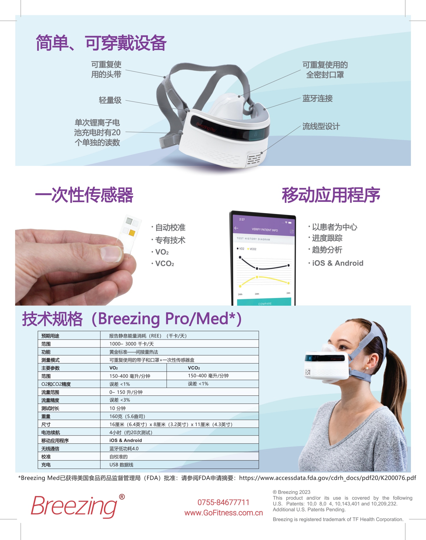 只需 10 分钟,Breezing Pro 即可精确测量患者的新陈代谢,并立即将数据传输至移动设备上的 Breezing Pro 应用程序