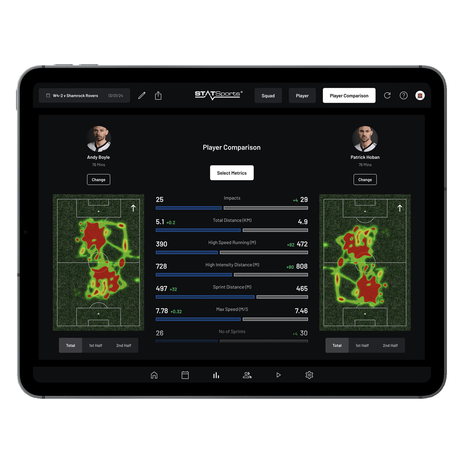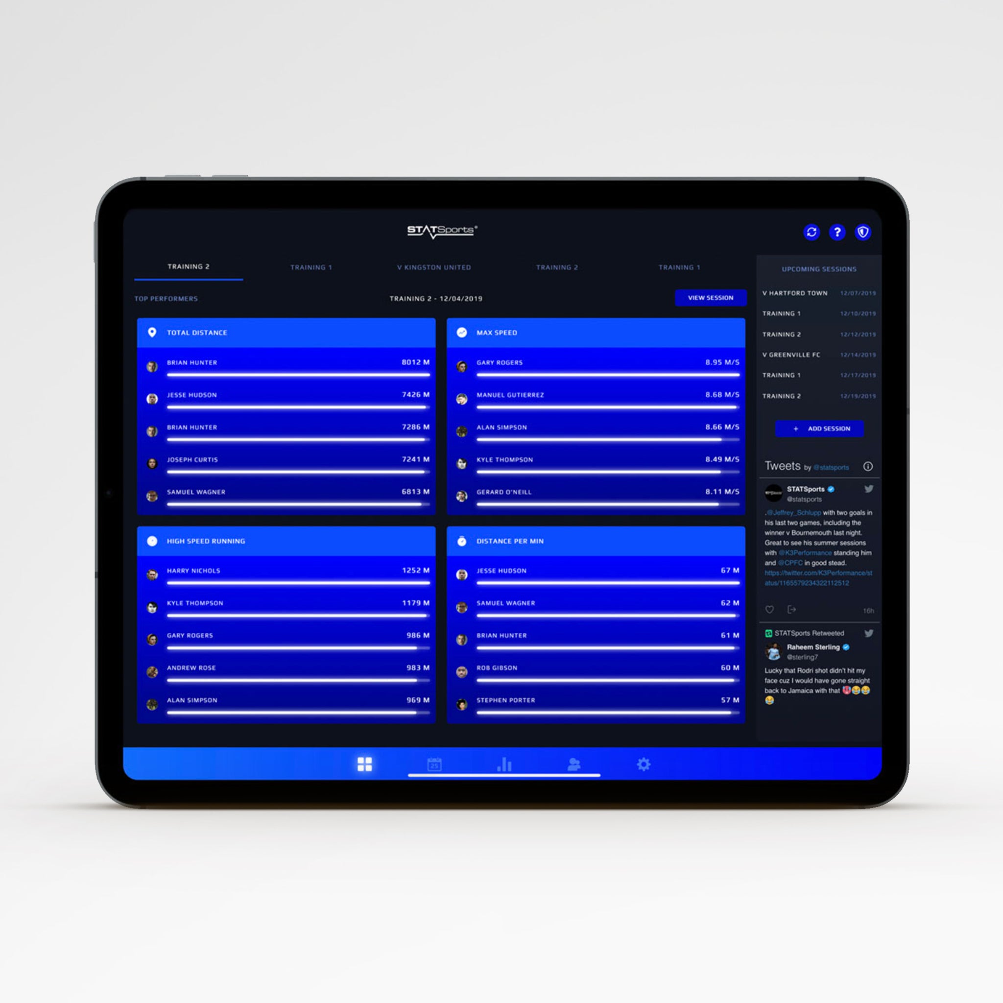 使用 FIFA 最准确、可靠和一致的 GPS 分析平台,监控您的球队的健康状况、安排会议并发送推送通知。