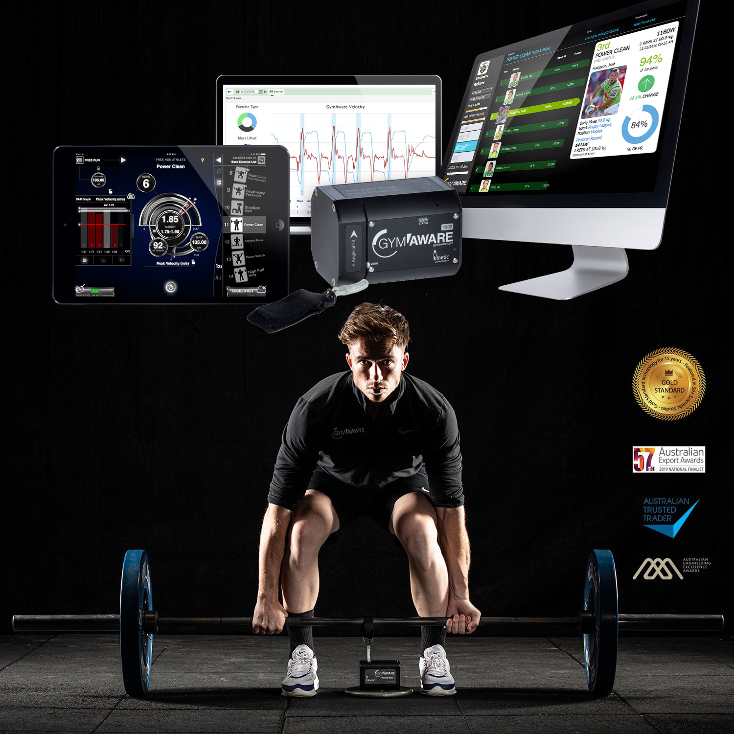 Gymaware是基于速度训练原理设计而成力量功率测试设备,但是它不仅仅是一套测试设备,它还是一个训练监控监控设备;GymAware是通过监控运动员在做力量训练时的动作速度,进而得出功率、运动轨迹、运动距离等一些指标,从而监控训练。