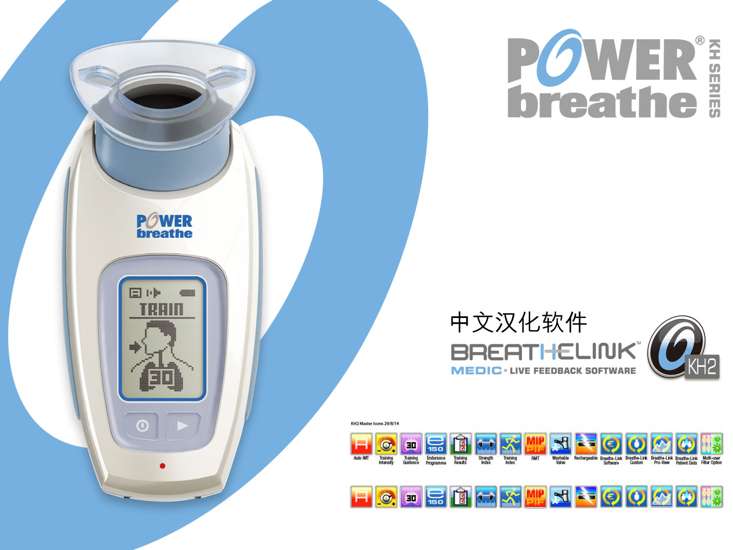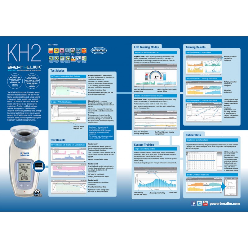 POWERbreathe KH2 是一款带有软件的电子吸气肌训练设备,供运动医疗保健专业人员使用,进行吸气肌训练、测试和分析。